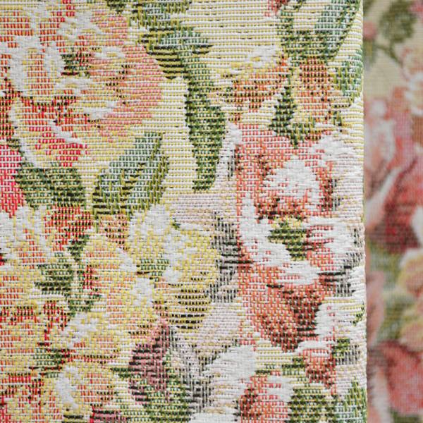 カーテン【日本製】【丸洗い】エリザベス 花柄 アンティーク調 ロココ調 エレガント 豪華 ピンク バラ 薔薇 ローズ 上品 ヨーロピアン フェミニン 女性 ゴブラン