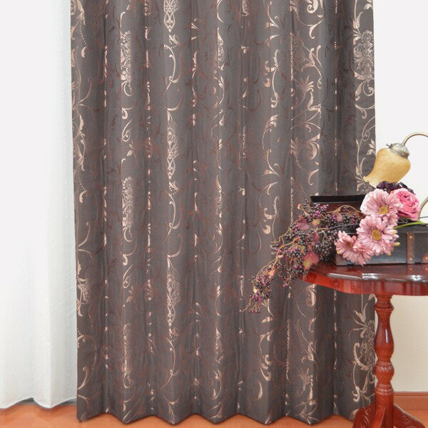 カーテン【日本製】【丸洗い】ラルフ ヨーロピアン アンティーク調 上品 シック 光沢 ツタ柄 植物柄 リビング ベージュ 豪華 新築 ロココ調 エレガント 明るい オーダーカーテン