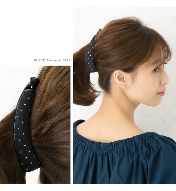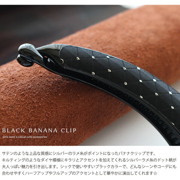 keyword :バナナクリップ クリップ ヘアアクセサリー ヘアアクセ まとめ髪 ポニーテール キルティング ブラック 黒 女性 レディース■□ Item information - 商品説明 - □■ サテンのような上品な質感にシルバーのラメ糸がポイントになったバナナクリップです。